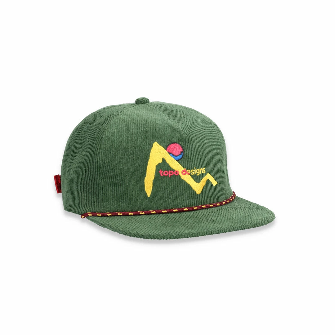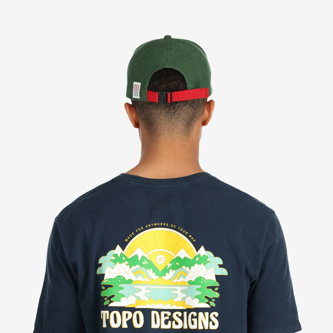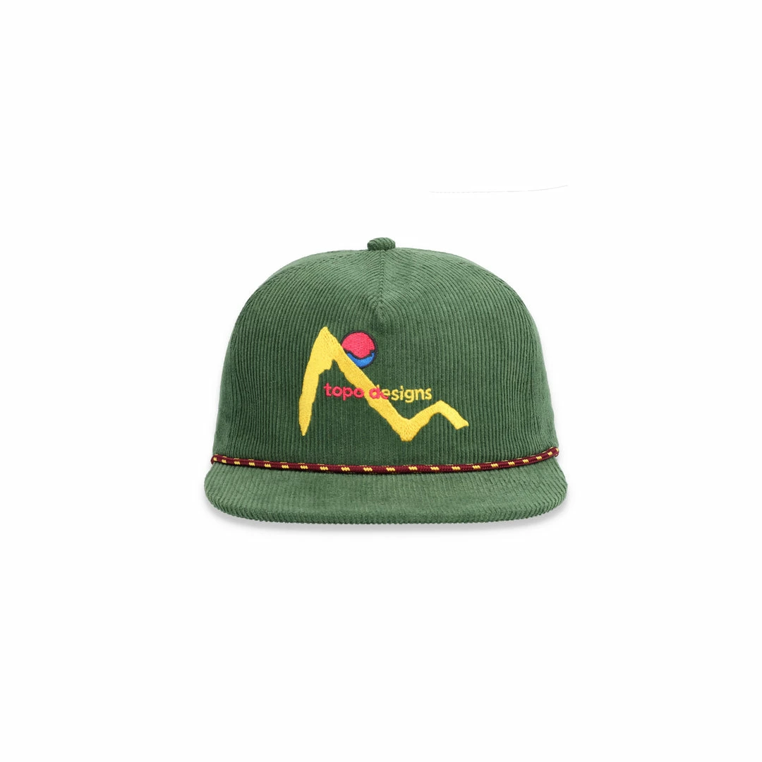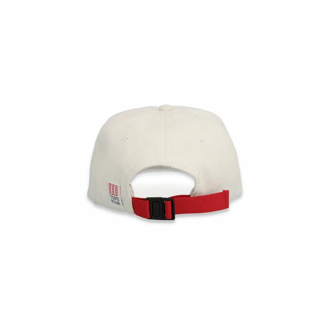 This corduroy hat features a 5-panel structured silhouette, with an embroidered custom front design, and an adjustable quick-release back closure.