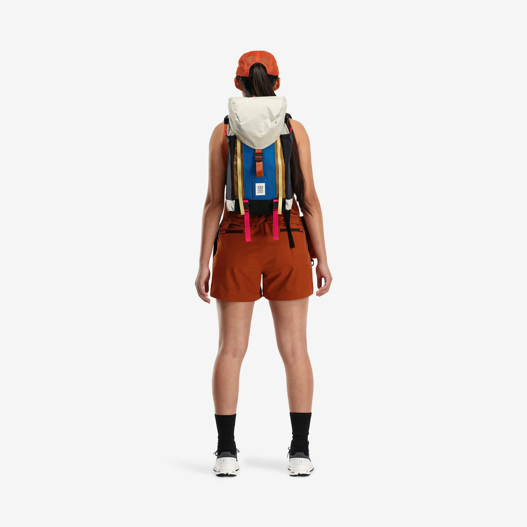 The Mountain Pack is a more comfortable and stylish carry option on the way up to climb, hauling daily essentials around town or navigating the trail. Organization pockets make it easy to get through TSA, while large side pockets fit a 32oz Nalgene. Four compression straps adjust to the load size, while durable daisy chain webbing is perfect for securing extra gear or attaching a bike light.