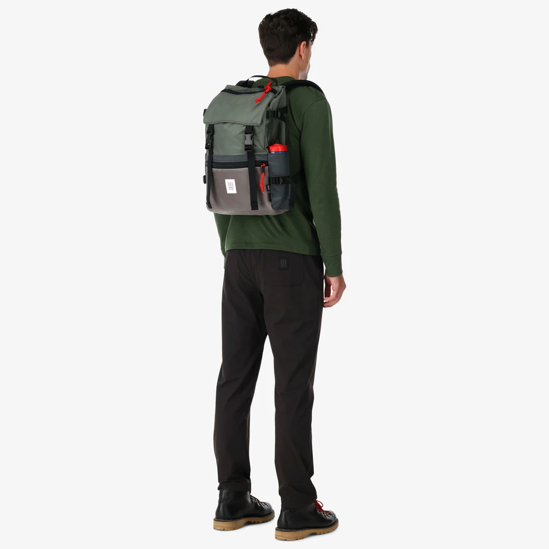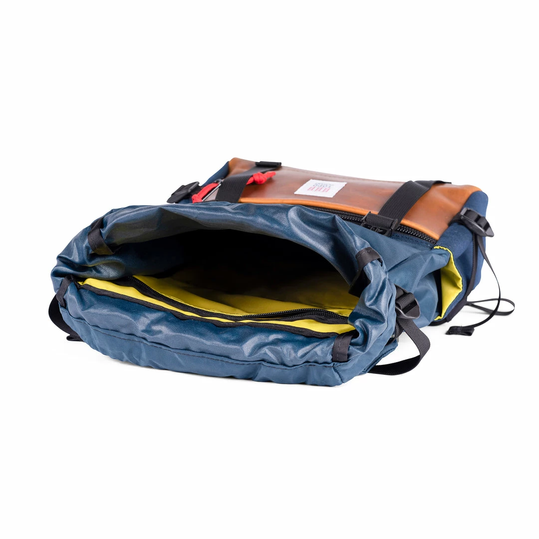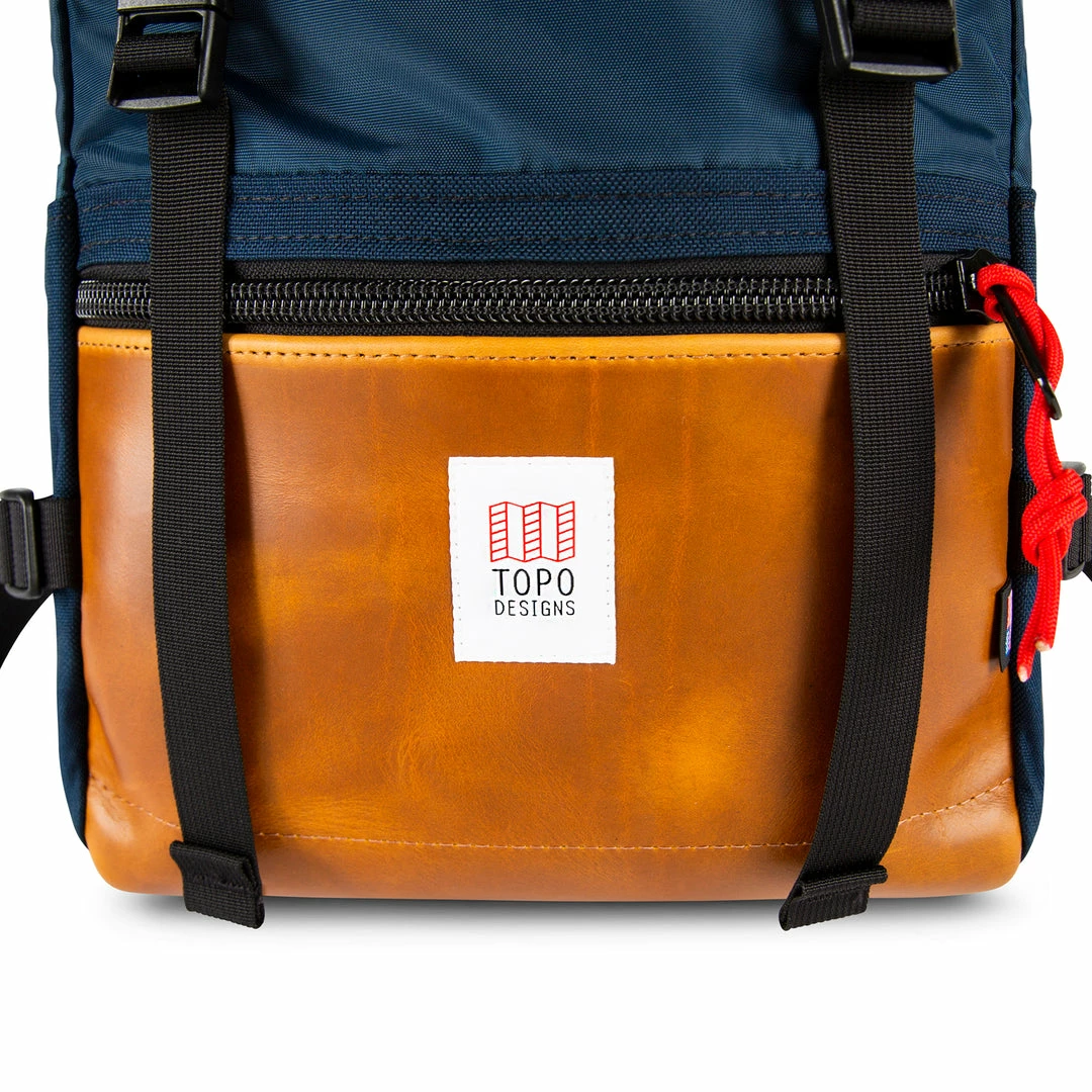 The Rover Pack Heritage has sleek Horween® leather base and durable, water-resistant Cordura® upper with a cinch top closure. An exterior front pocket and top flap pocket give quick access to smaller items and internal laptop sleeve keeps your computer secure. Side pockets hold your water bottle or extra gear.