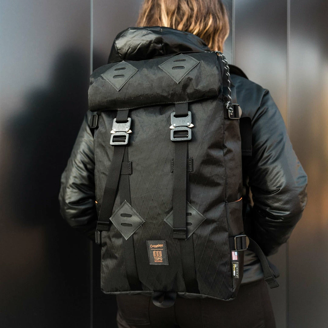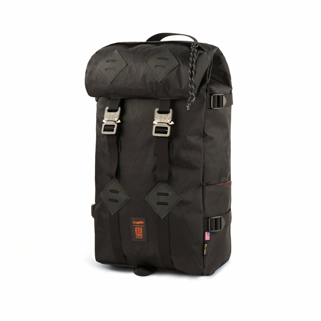 We are excited to say that we landed exactly where we’d hoped to be in hardware, fabrics and performance. Our joint answer to the perfect carry started with the classic Topo Designs Klettersack as our canvas, an obvious choice in function and form. We added top of the line X-Pacâ„¢ fabric, AustriAlpin Cobra buckles and a vibrant hi-vis orange nylon liner because we wanted to develop the pack of our dreams.