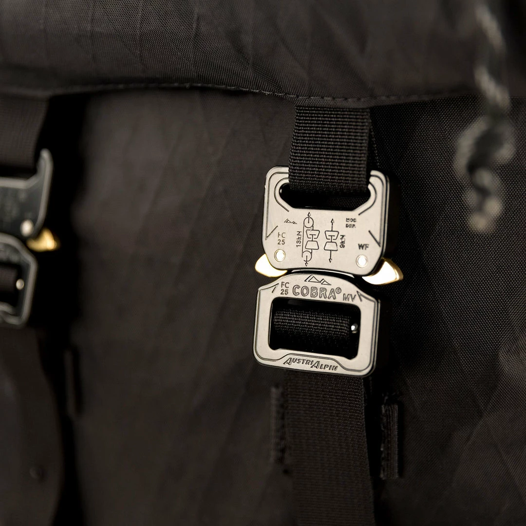 X-Pac™ exterior, Ballistic Black Cordura® back panel, hi-vis nylon interior, Hypalon lash tabs and AustriAlpin Cobra Buckles