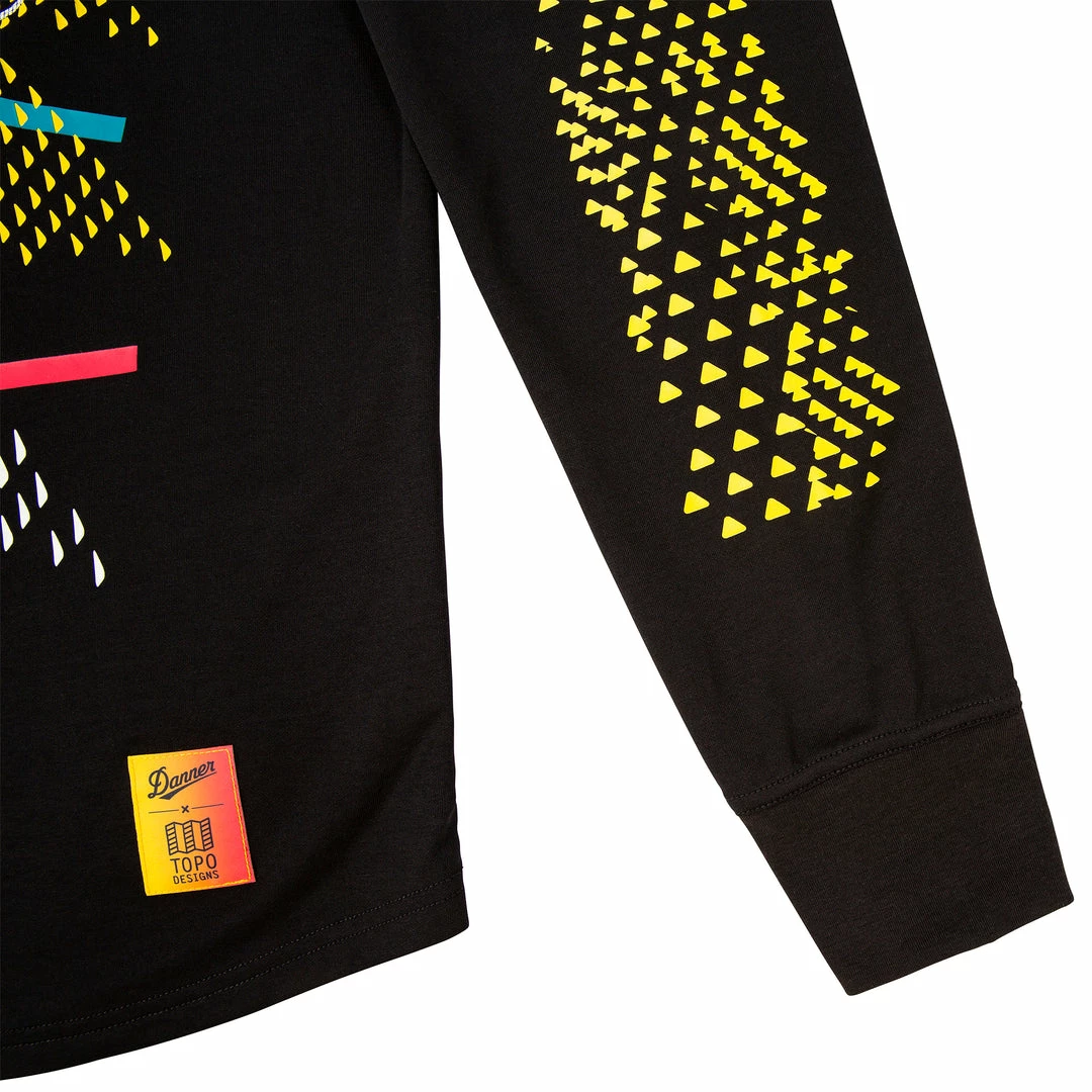 Made from a technical cotton-poly blend, the Topo Designs x Danner Tech Tee – Long Sleeve features a full sleeve geometric print and abstract shoelace front graphic with both brand names. The tee was illustrated by Topo Designs’ in-house design team. Its sweat-wicking properties make it ideal for running and hiking.